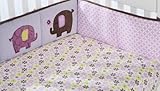 This 4 piece bumper set from the Elephant Patches collection by Carters is designed with your little girl in mind and is sure to keep her mesmerized by her sweet elephant friends. This 4 piece set includes 2 short bumpers (each measuring 10" x 27"), 2 long bumpers (each measuring 10" x 51"). Featuring a parade of elephants in printed appliques and multiple fabrications in a mix of lovely lilac, purple and lime green colors.